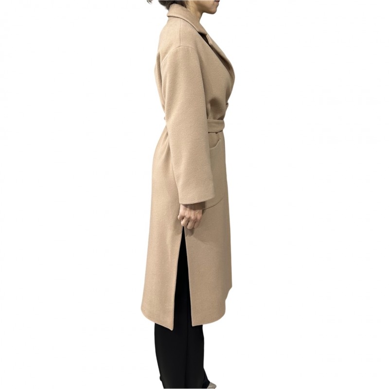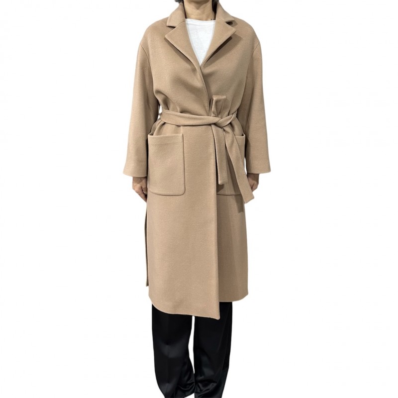Cappotto da donna monopetto a vestaglia con tasche applicate dalla linea morbida. Cintura abbinata per evidenziare il punto vita. Un capo confortevole adatto a tutte le situazioni, realizzato in tessuto lana misto cachemire.